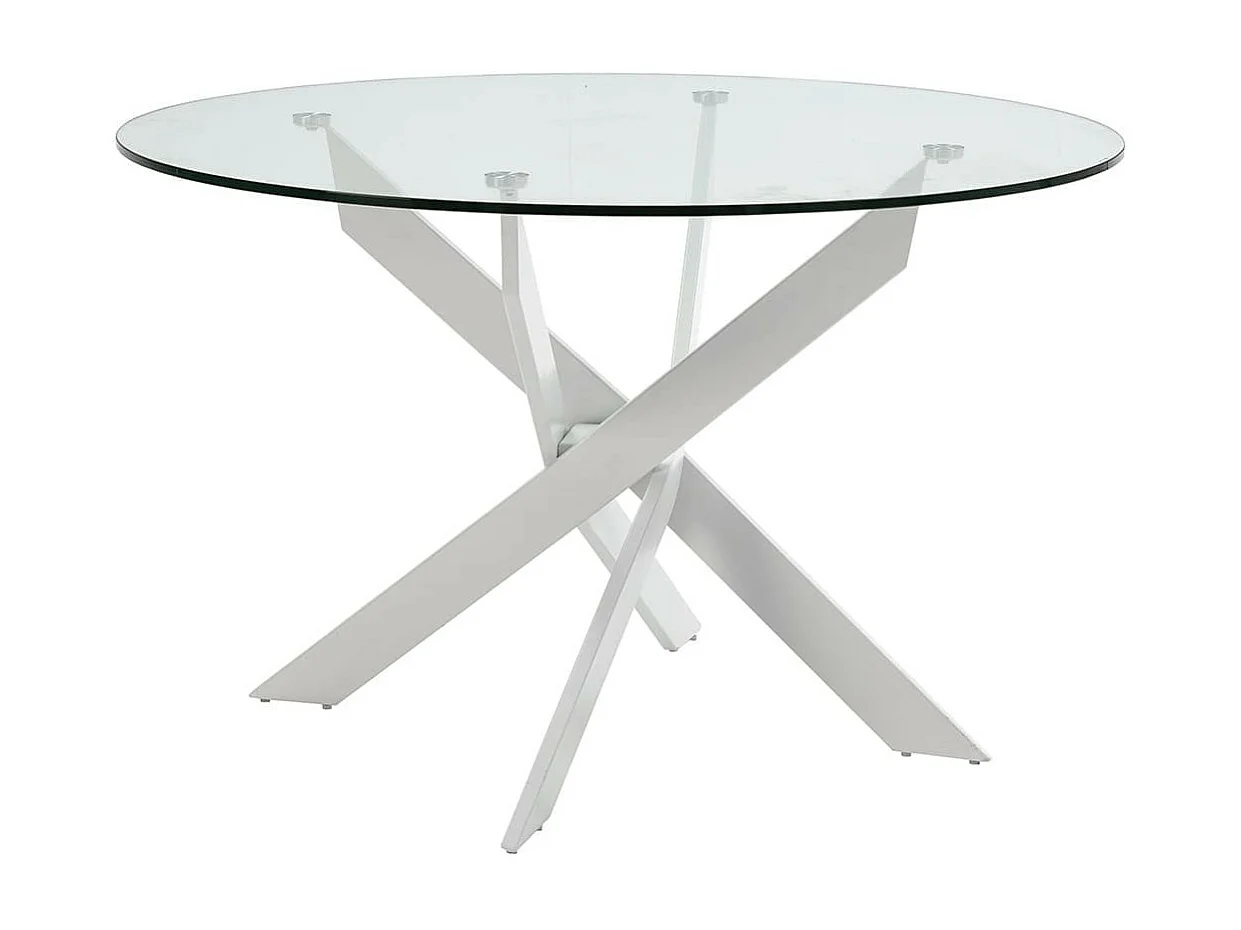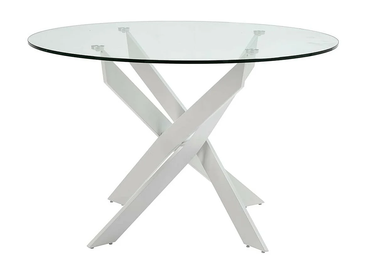 RITHA - Table Ronde 120cm Pieds Métal Blanc et Plateau en Verre