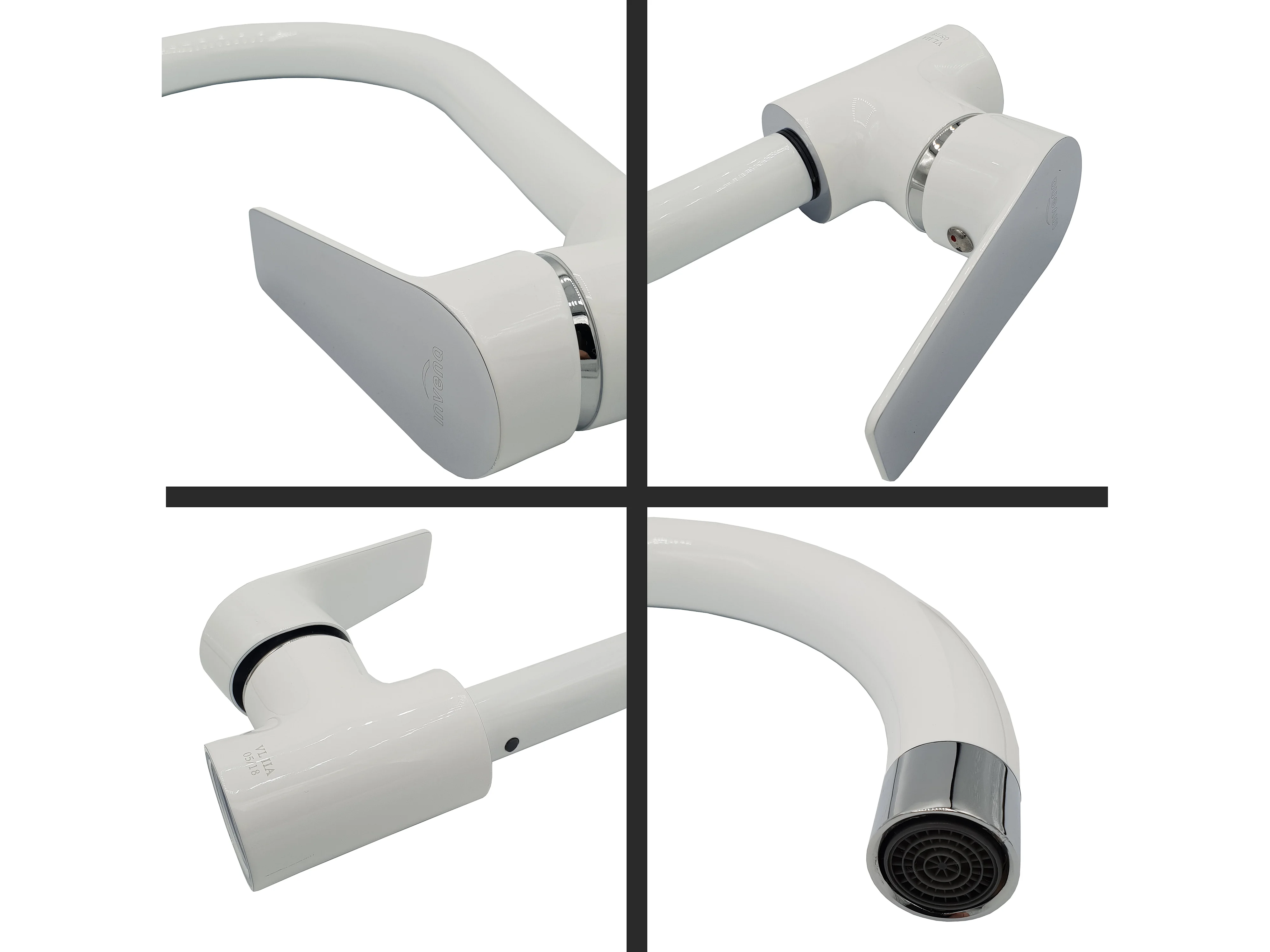 ROBINET DE CUISINE MURAL FLEXIBLE ÉVIER BLANC ROBINET FLEXO BEC FLEXIBLE