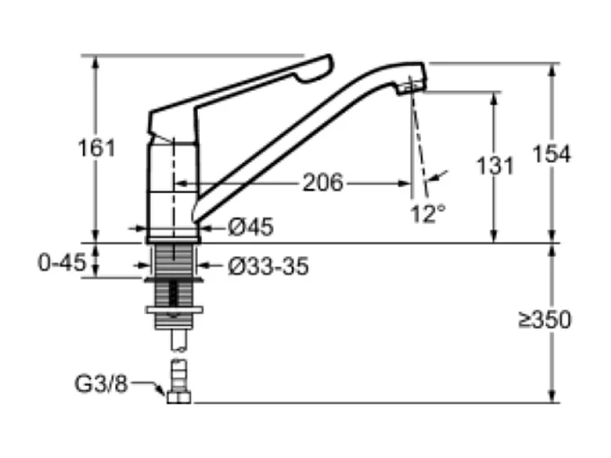 Robinet cuisine bec bas PMR JACOB DELAFON July+ chromé