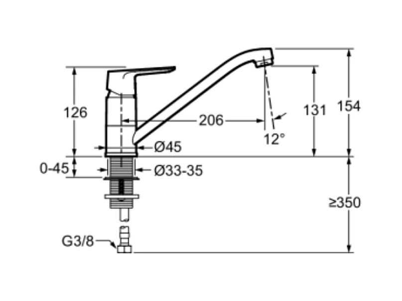 Robinet cuisine bec bas PMR JACOB DELAFON July+ chromé
