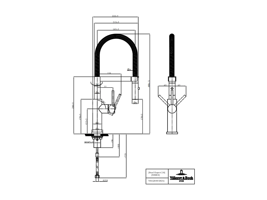 Robinet cuisine semi-pro VILLEROY ET BOCH Steel expert 2.0 noir mat