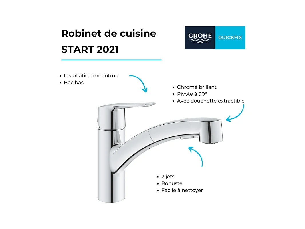 Robinet de cusine avec douchette GROHE Start 2021 + microfibre
