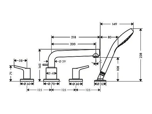 Robinet mélangeur bain douche 4 trous HANSGROHE Talis S chromé