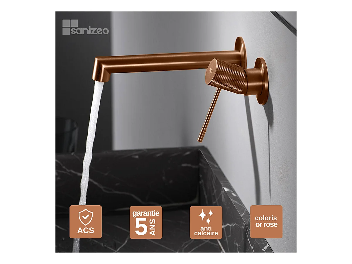 Mitigeur Lavabo Encastré Salle de Bain or rose cuivré – Anti-Calcaire – Design moderne - LINE IMEX