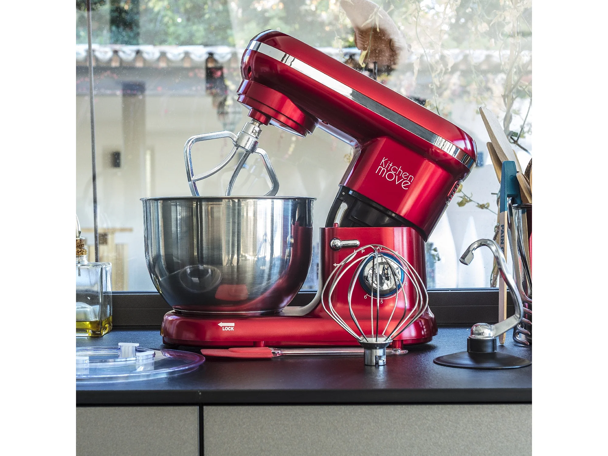 Kitchencook - Robot Pétrin 5l - 1300w - 6 Intensités - Bol Amovible Acier Inoxydable - Crochet à Pâte - Fouet à Fils - Rouge