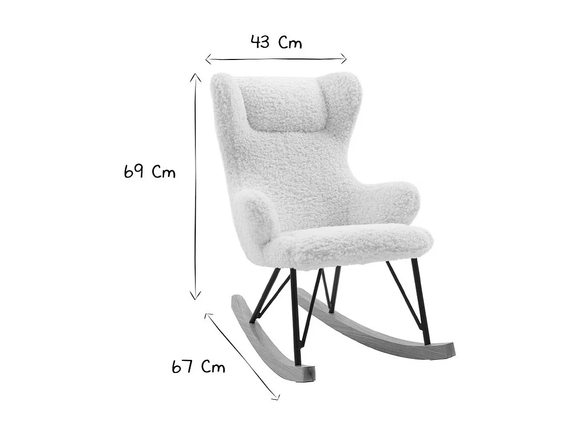 Rocking chair enfant en tissu effet peau de mouton blanc, métal noir et bois clair SHAUN
