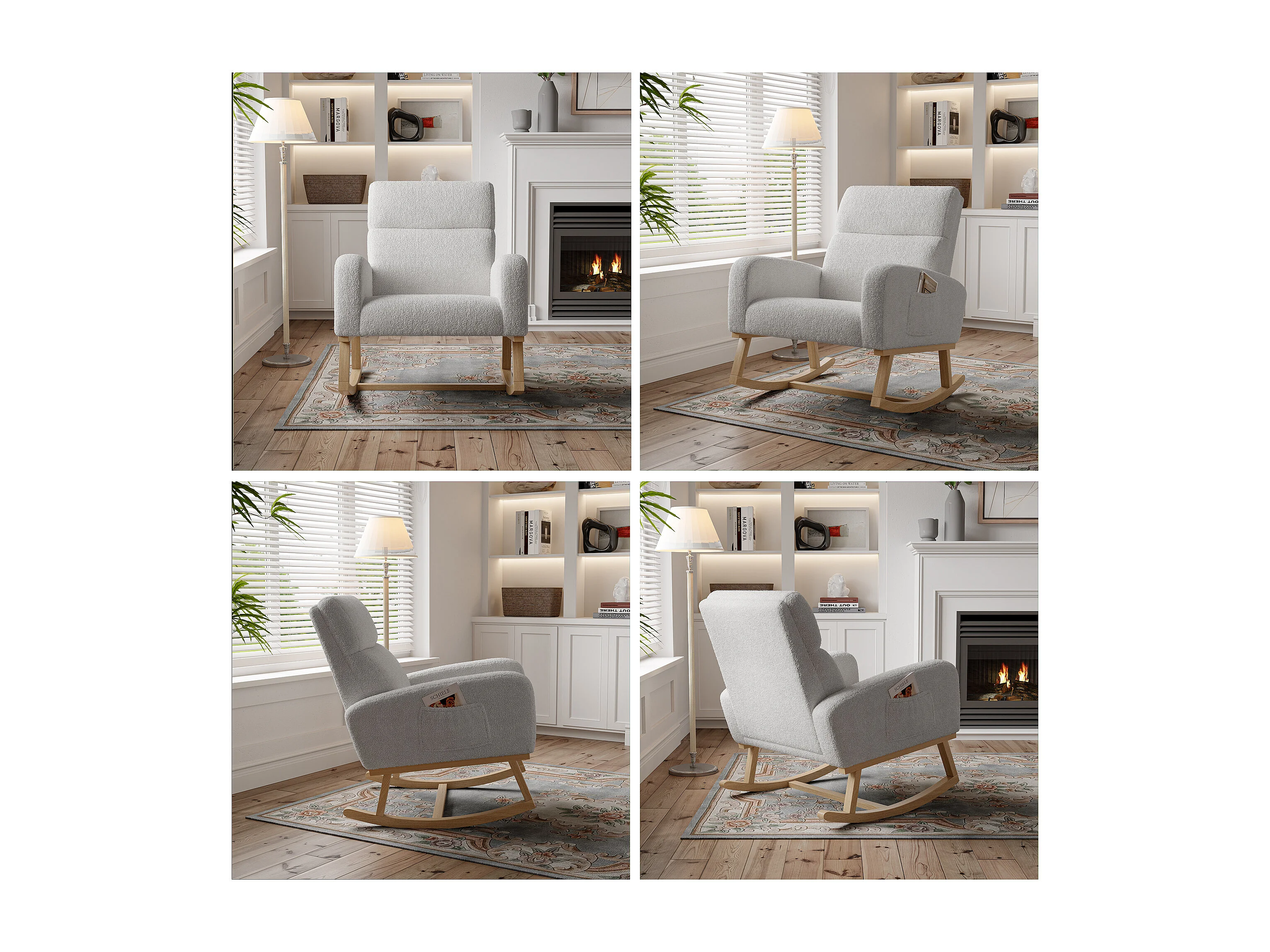 Rocking Chair, Fauteuil Allaitement avec Poche Latérale et Accoudoirs, Pieds en Bois, Gris foncé