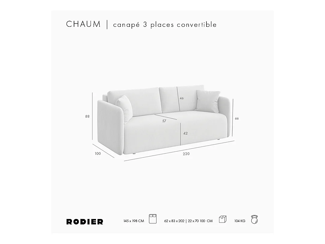 Rodier Canapé 3 places convertible Chaum crème