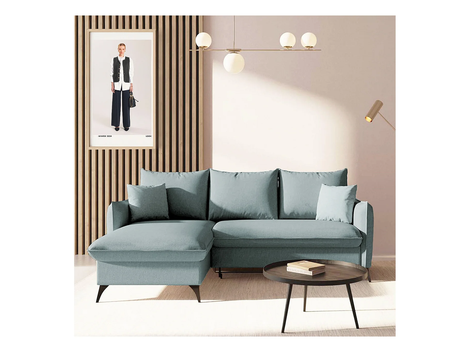 Rodier Canapé d'angle gauche convertible Brim bleu clair