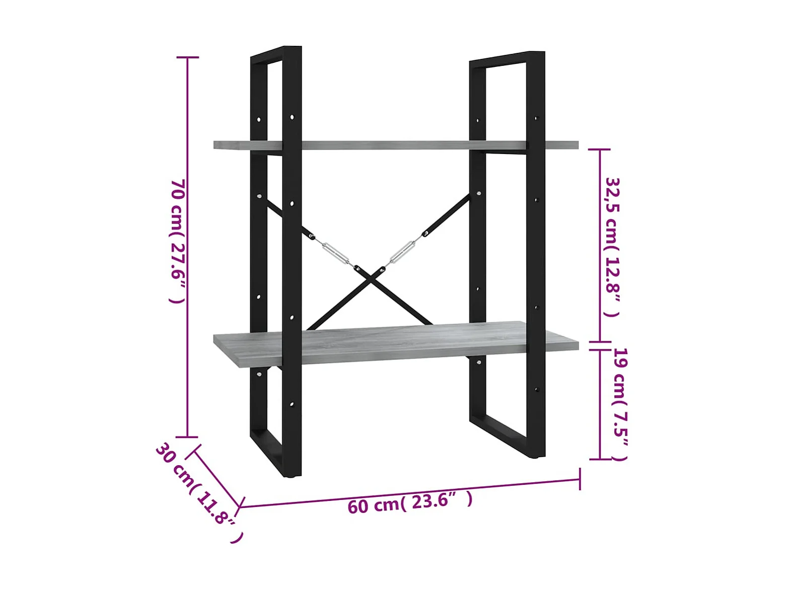 Roermond Bibliothèque 2 niveaux Sonoma gris 60x30x70cm Bois d'ingénierie