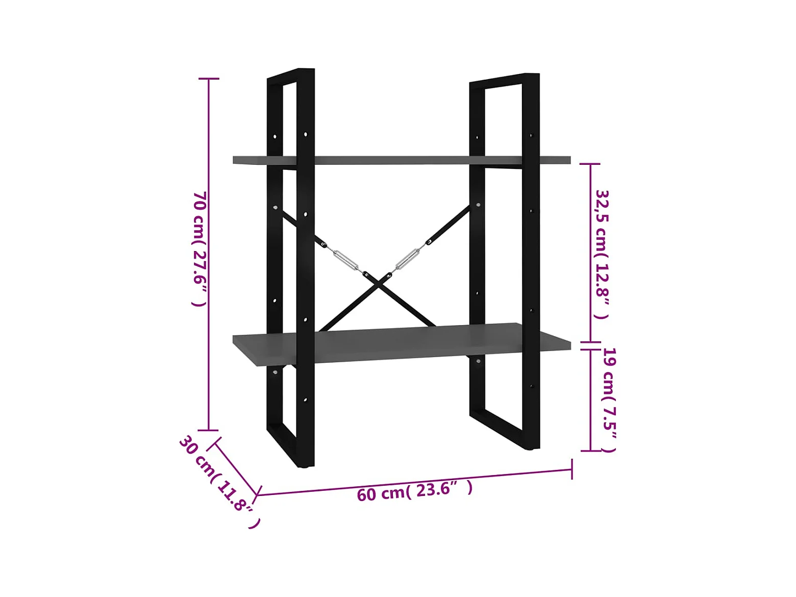 Roermond Bibliothèque à 2 niveaux Gris 60x30x70 cm bois d'ingénierie