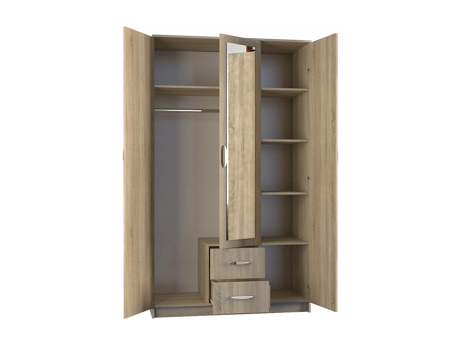 ROMA | Grande Armoire chambre bureau | Penderie multifonctions | 2 portes | Miroir | 2 tiroirs | Meuble de rangement | Etagères