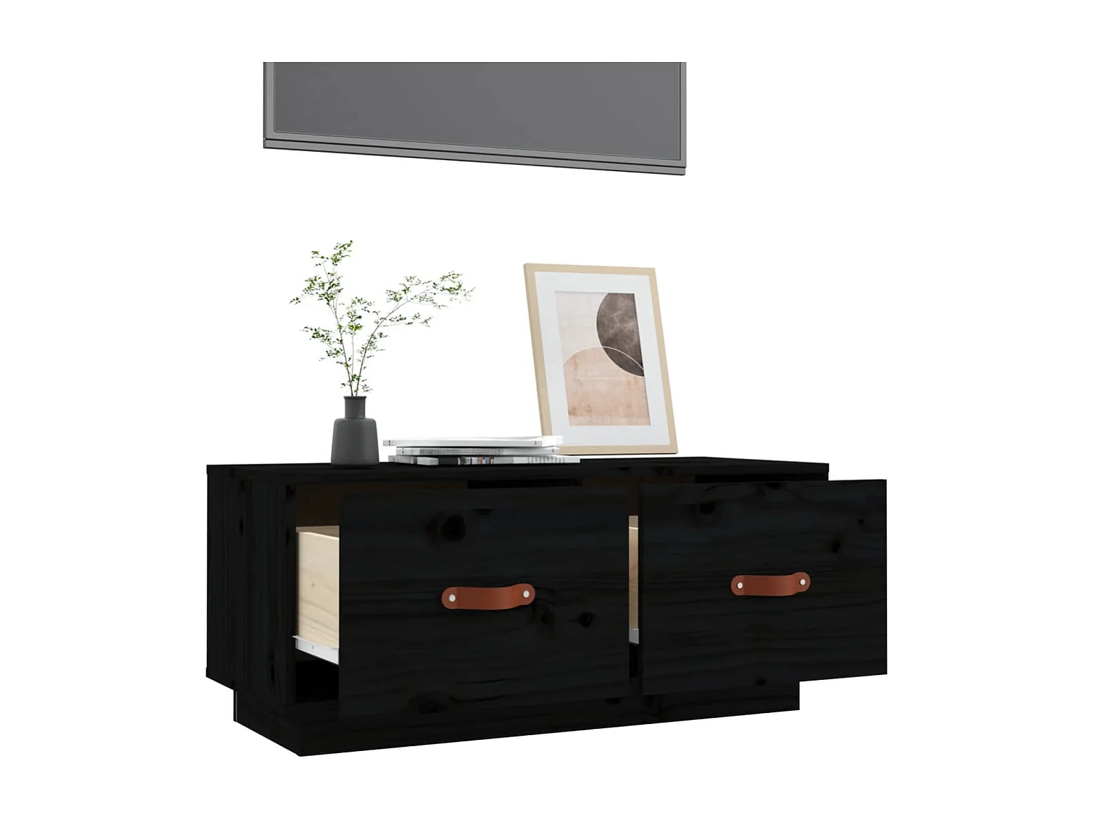 Rorik Meuble TV Noir 80x34x35 cm Bois de pin massif