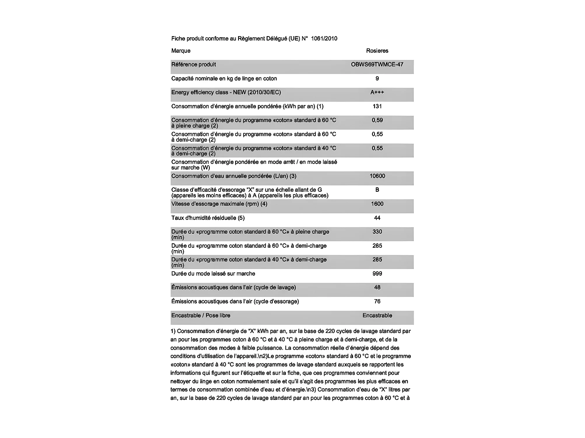 Rosieres Lave-linge intégrable 9kg 1600 tours/min - obws69twmce-47