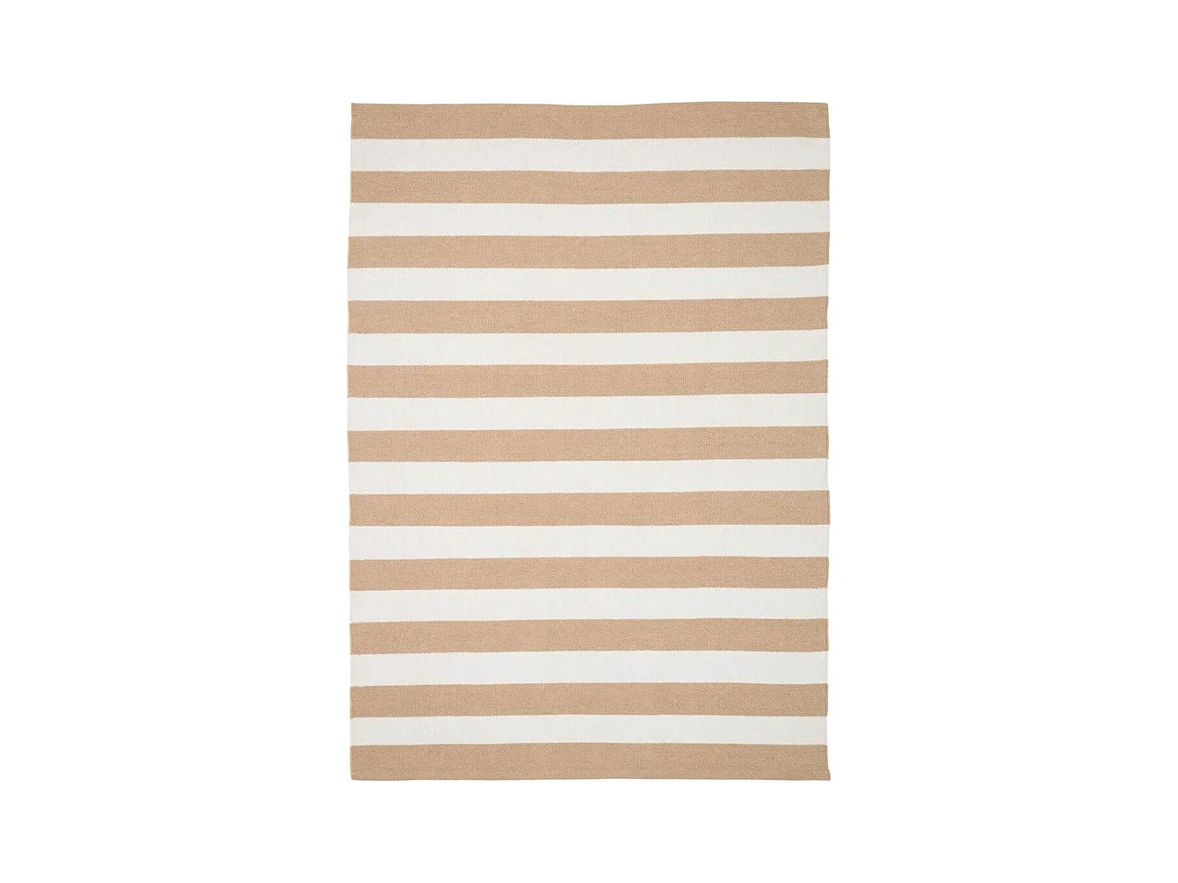 RUDY - Tapis 140x200cm PET Recyclé Rayé Beige et Blanc