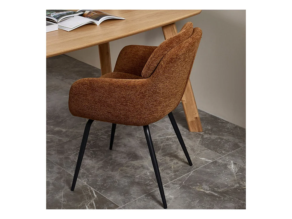 Runa - Lot de 2 fauteuils de table en tissu et métal - Caramel
