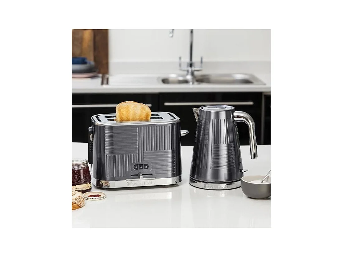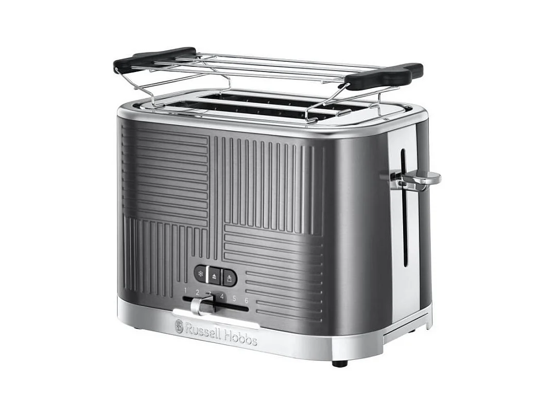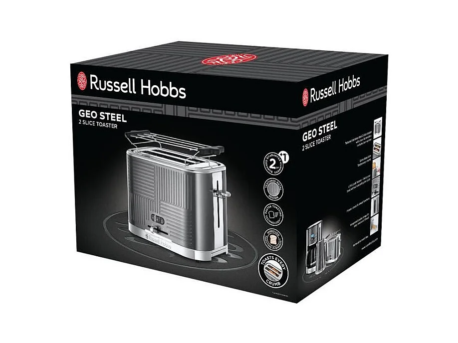 Russell Hobbs 25250-56 Toaster Grille-Pain Geo Steel, 4 Fonctions, Temperature Ajustable, Rechauffe Viennoiseries, Pince