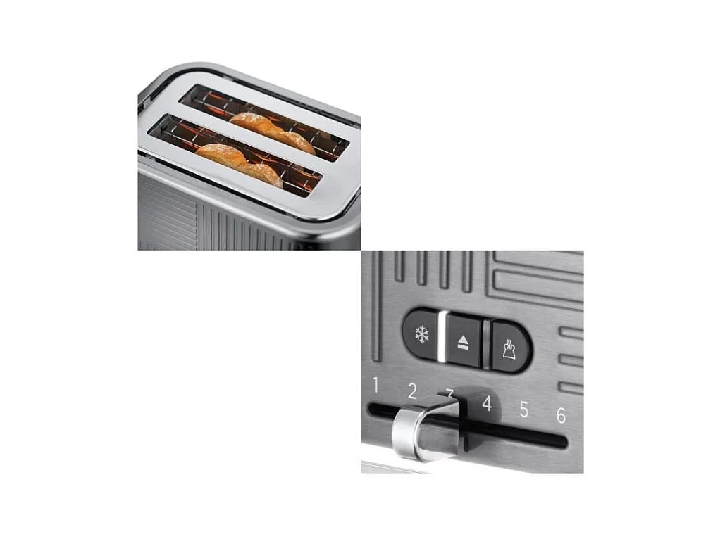 Grille-pain H.KoeNIG TOAS28 - 2 fentes - 3 fonctions - Thermostat réglable 7 niveaux - Acier inoxydable - Gris