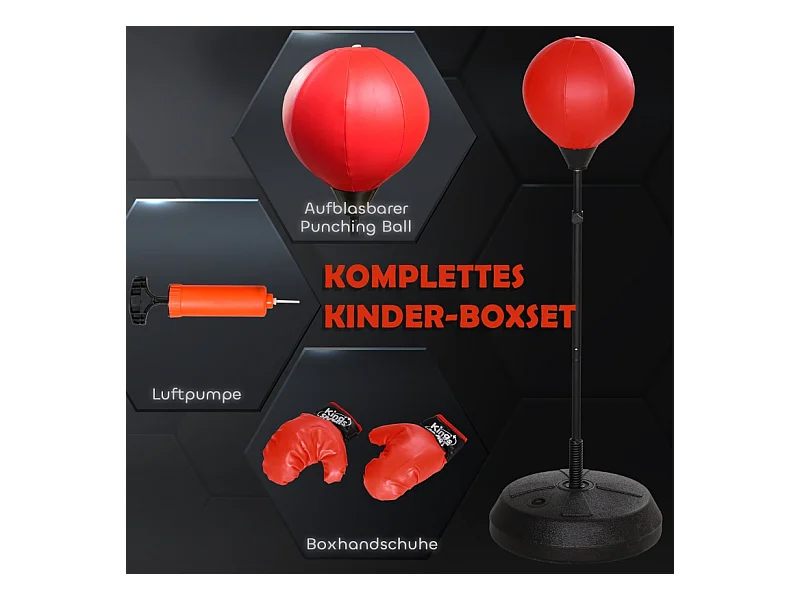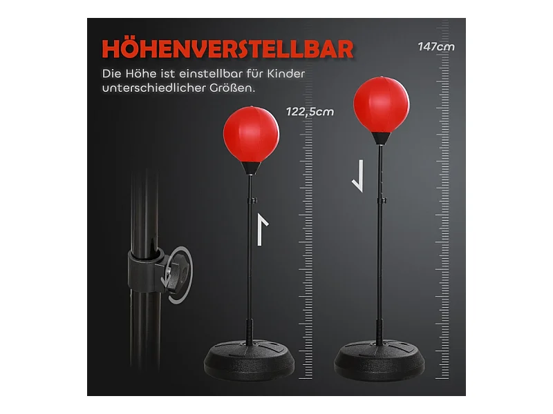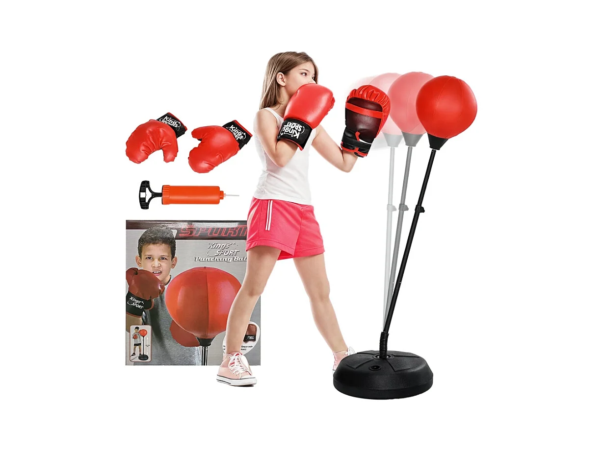 Sac de boxe réglable pour enfants 5-10 ans, avec gants, plastique, rouge (44.3x44.3x147 cm)