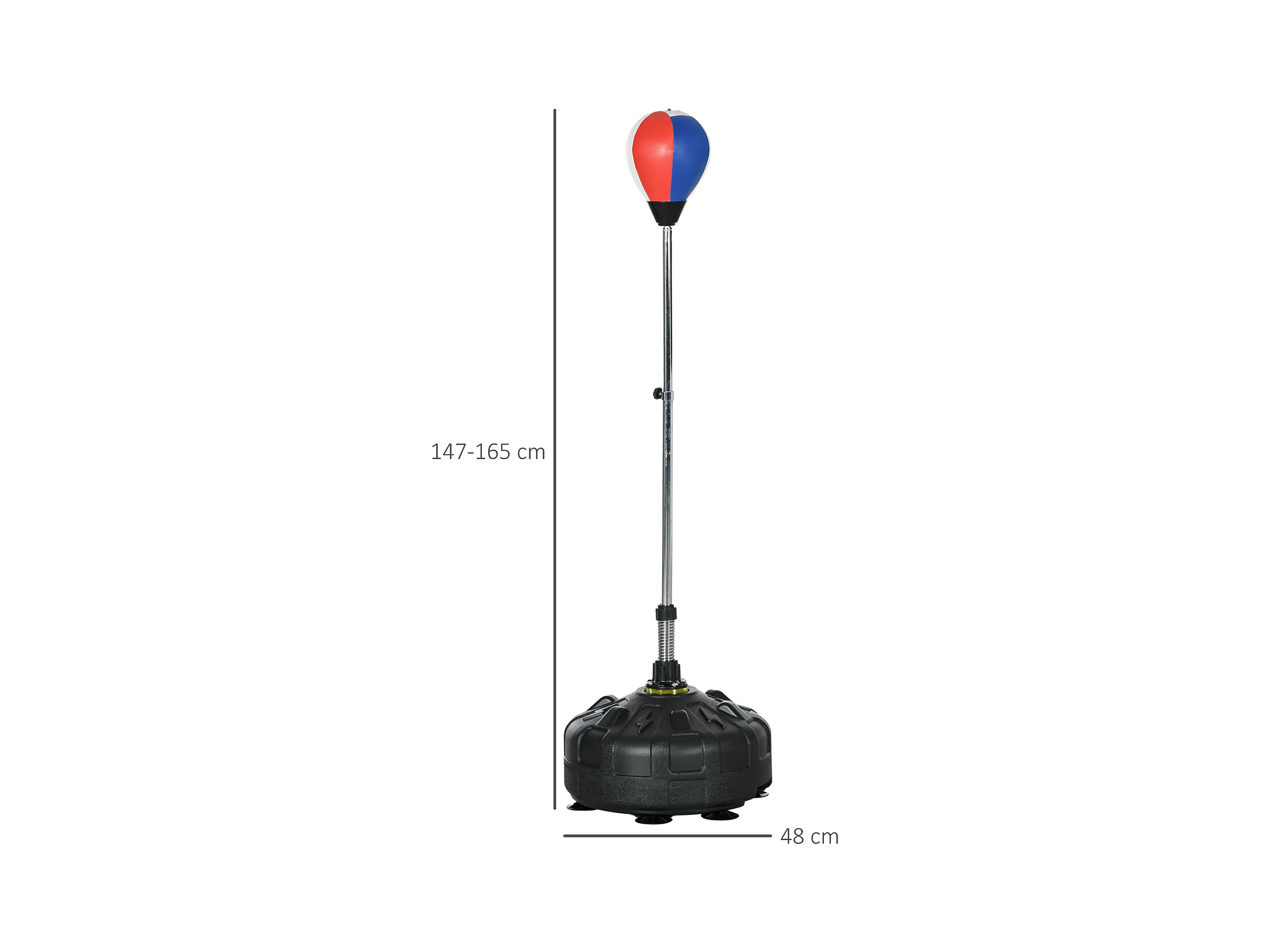 Sac de frappe sur pied, réglable en hauteur de 147 à 165 cm, cuir, noir (48x48x147-165 cm)