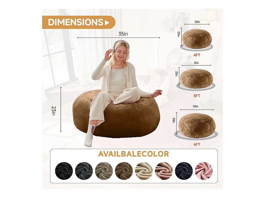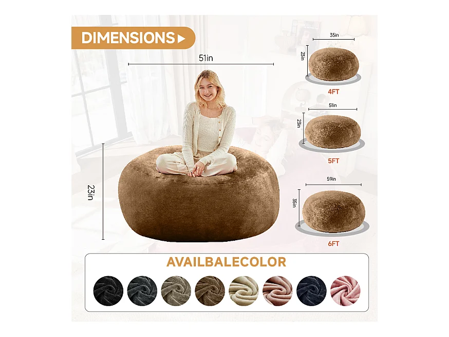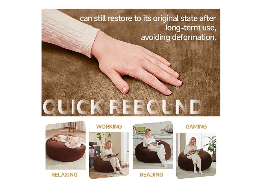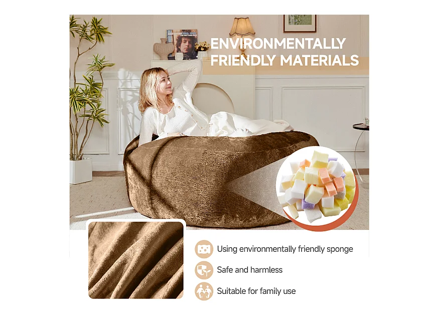 Sacs de siège géant pour adulte, confortable et moelleux, mousse, couleur café (120x120x60cm)