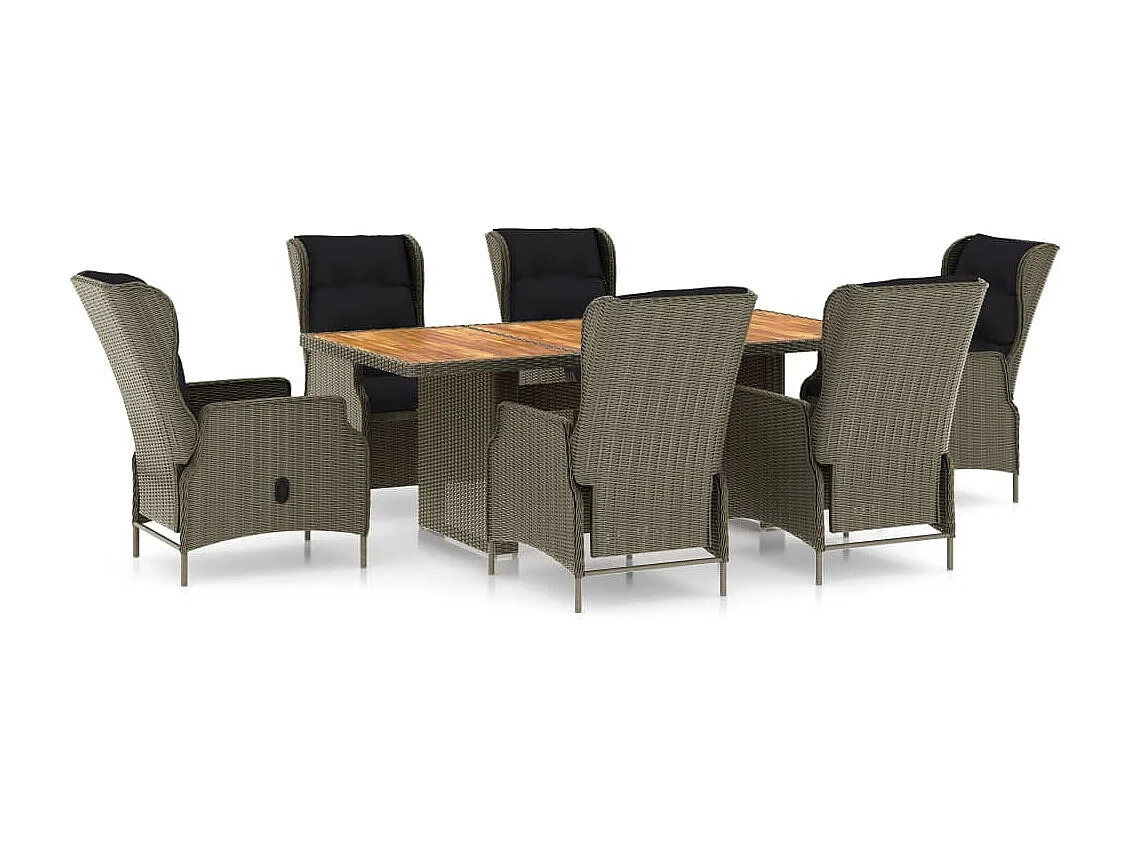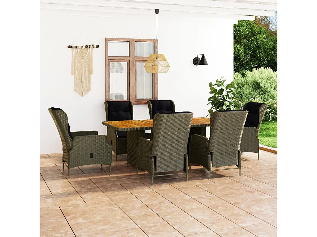 Saint-Denis Ensemble à manger d'extérieur et coussins 7 pcs résine tressée