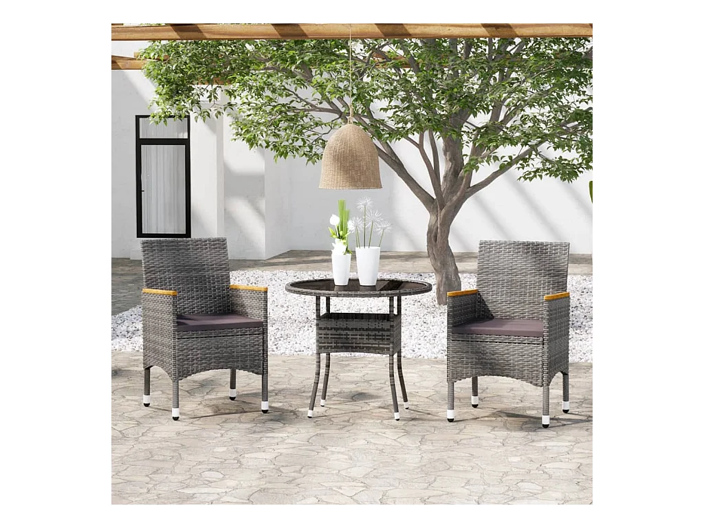 Salle à manger de jardin 3 pcs Résine tressée Gris GFDF78430