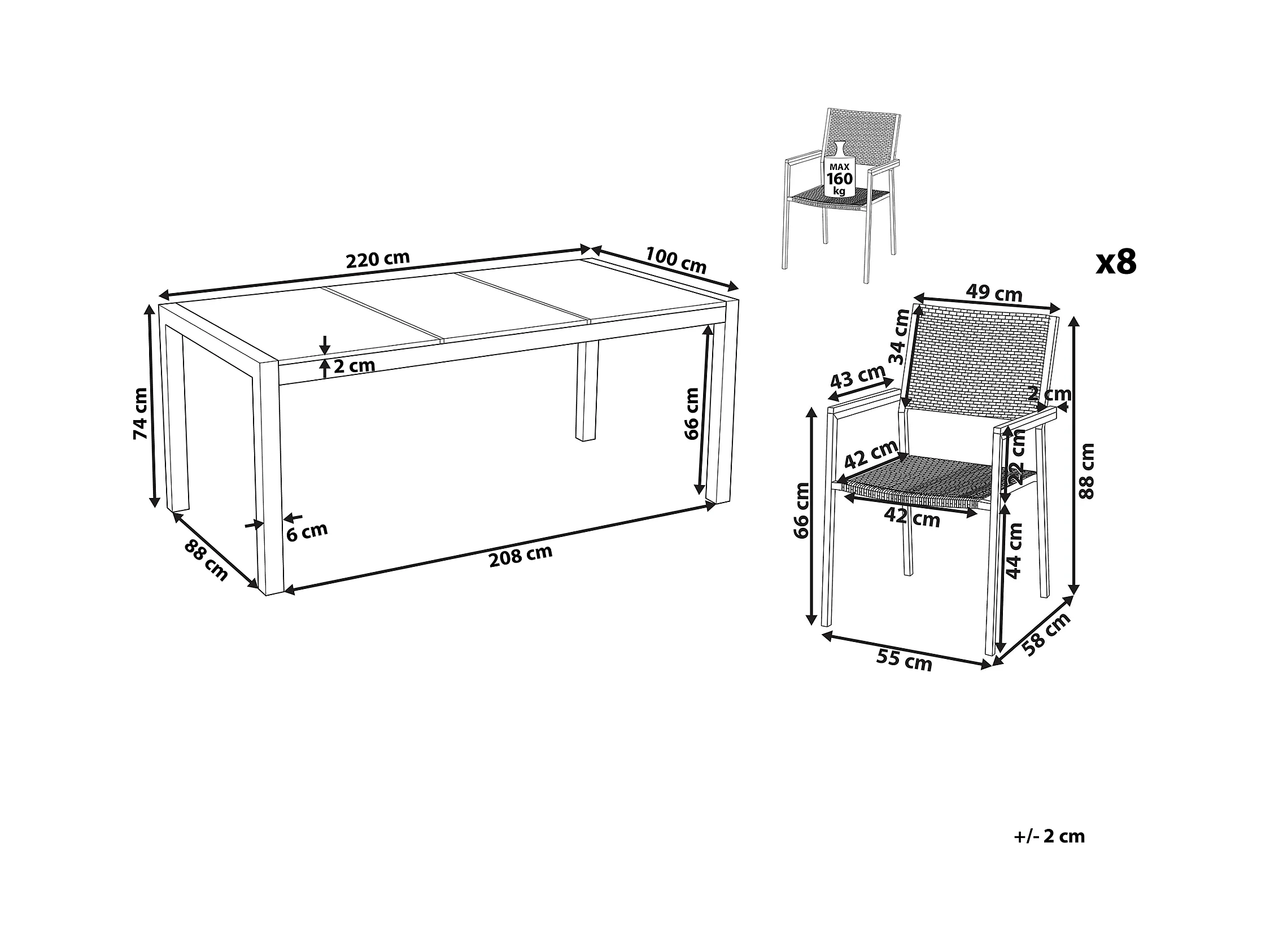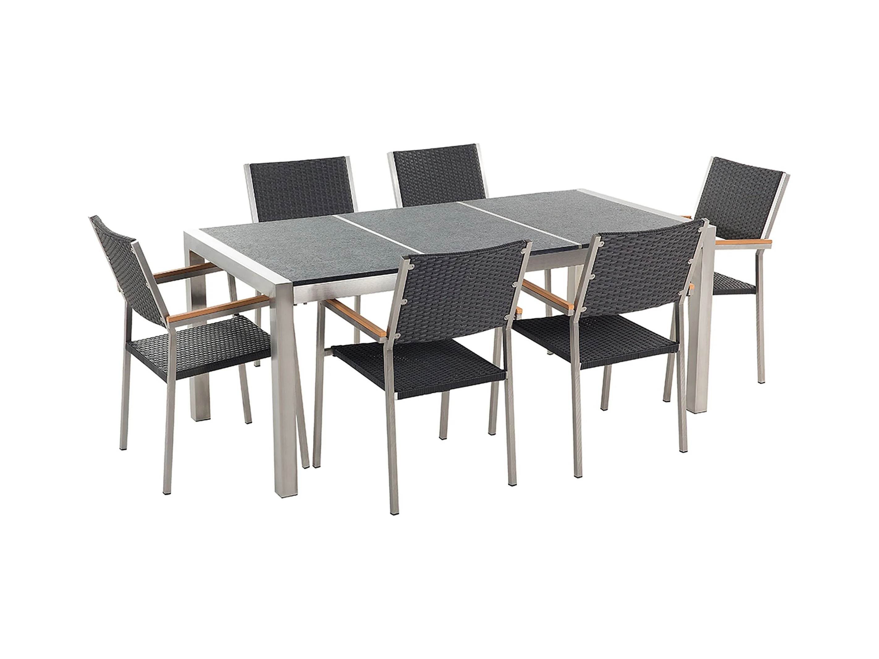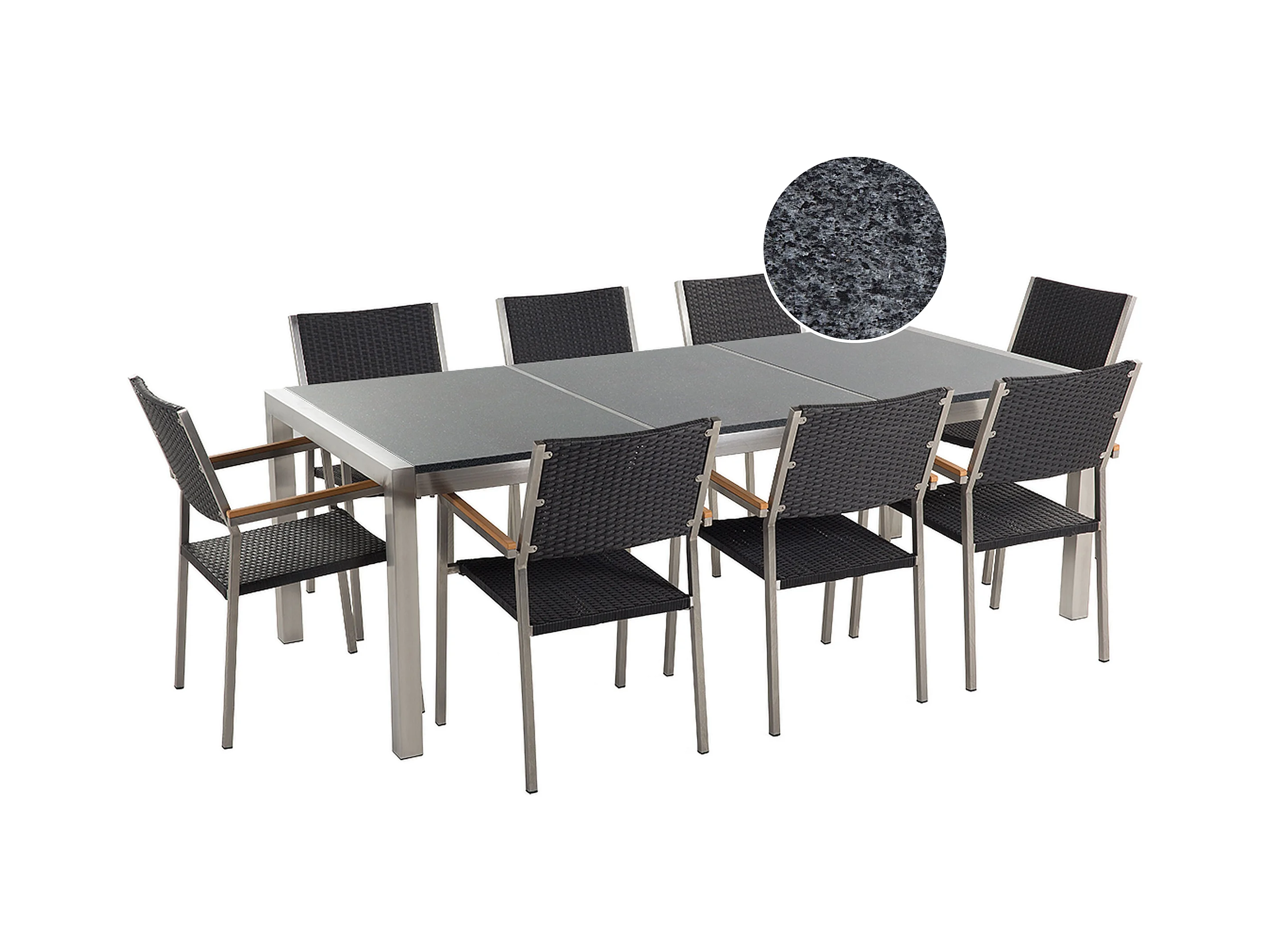 Salle à manger de jardin 8 places GROSSETO Triple plaque Granit Poli Gris/noir