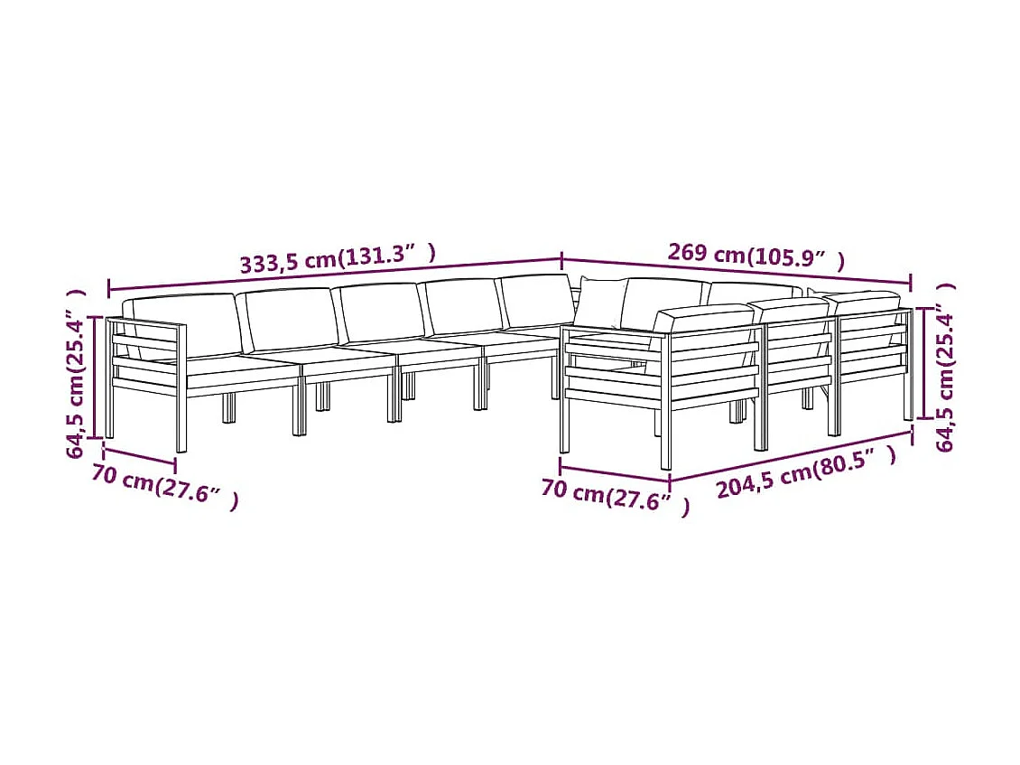 Salon de jardin 10 pcs avec coussins Aluminium Anthracite