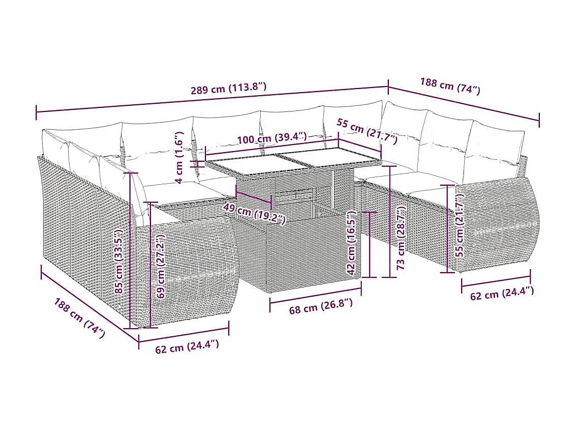 Salon de jardin 10 pcs avec coussins marron résine tressée