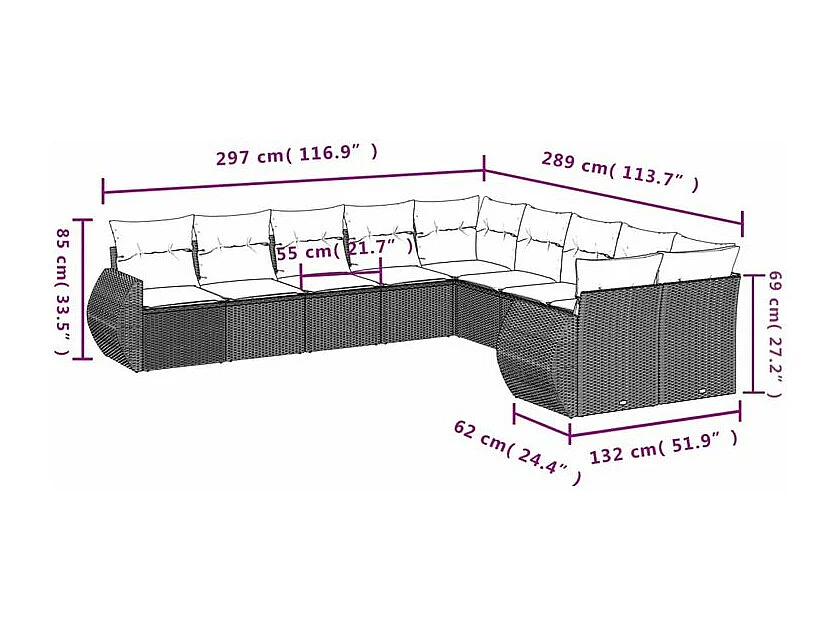 Salon de jardin 10 pcs avec coussins marron résine tressée