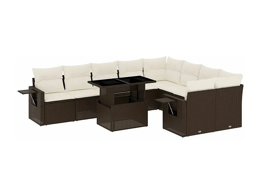 Salon de jardin 10 pcs avec coussins marron résine tressée