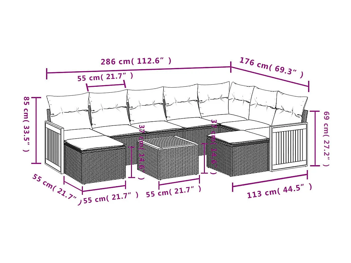 Salon de jardin 10 pcs avec coussins noir résine tressée