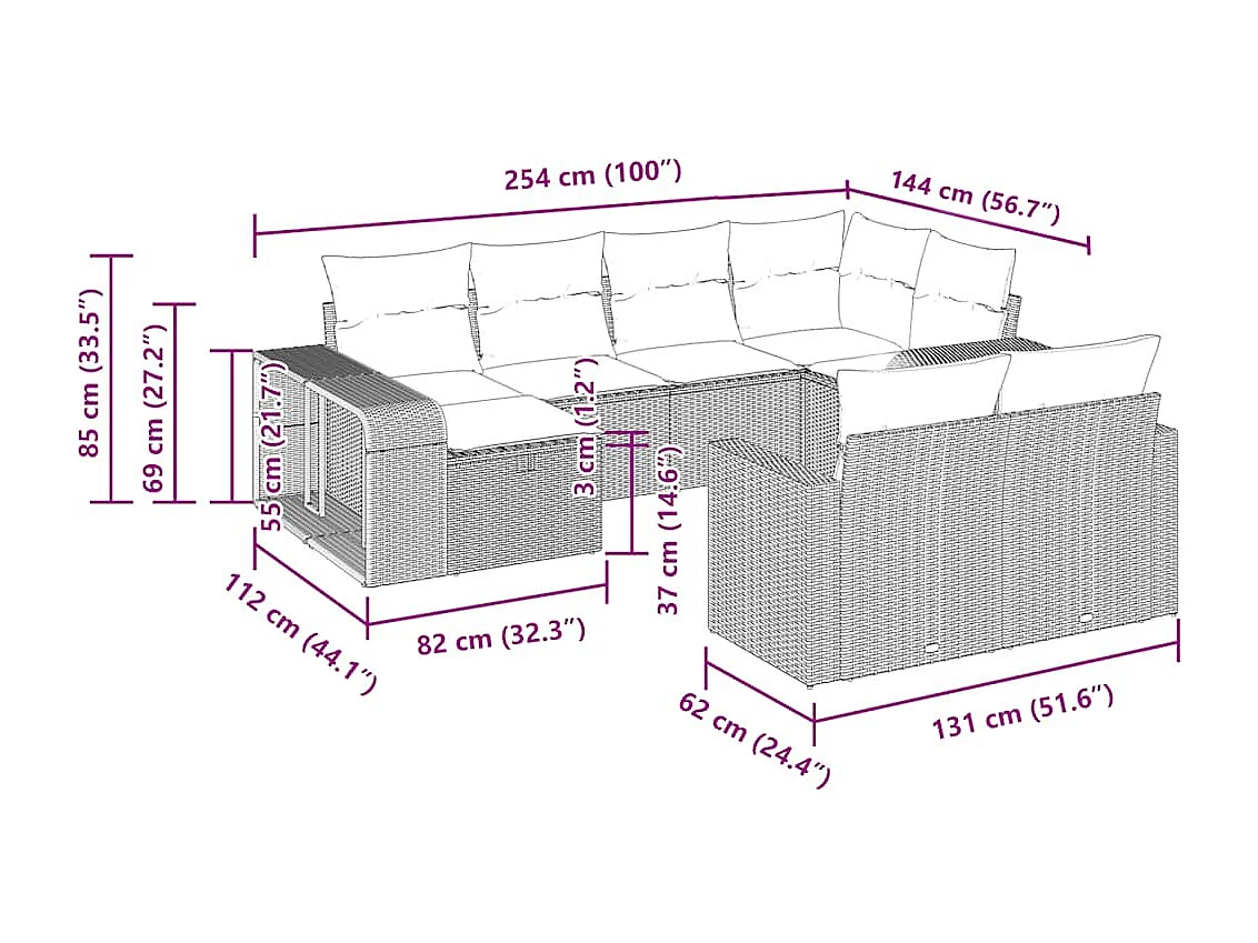 Salon de jardin 10 pcs avec coussins noir résine tressée