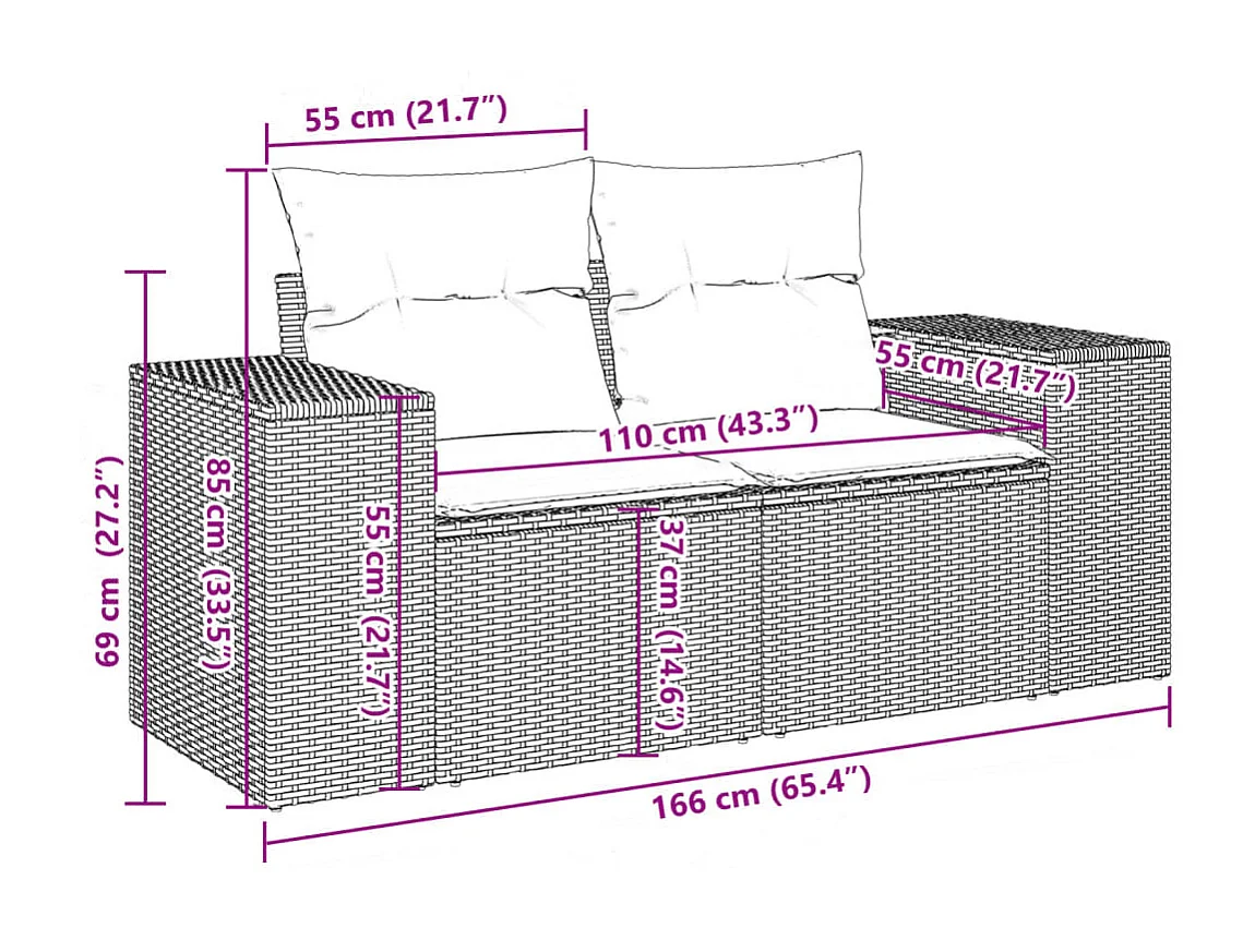 Salon de jardin 10 pièces avec coussins noir résine tressée