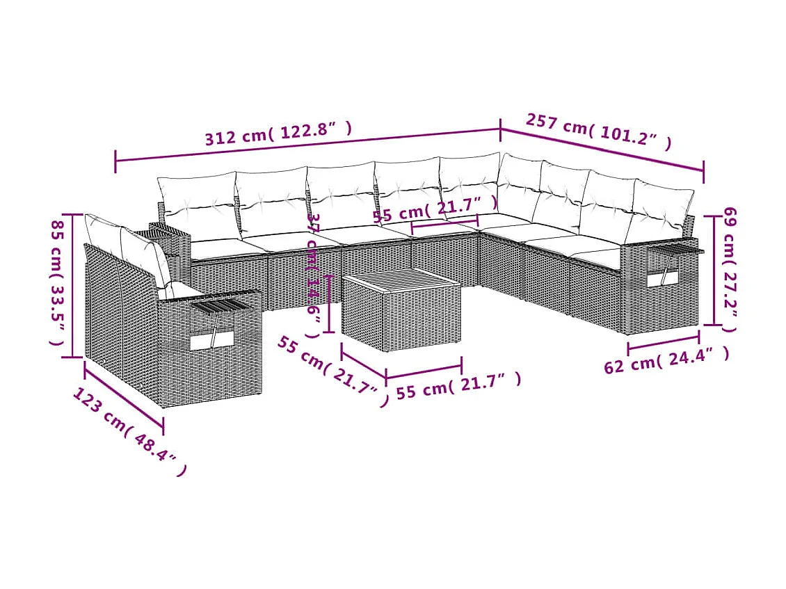 Salon de jardin 11 pcs avec coussins beige résine tressée