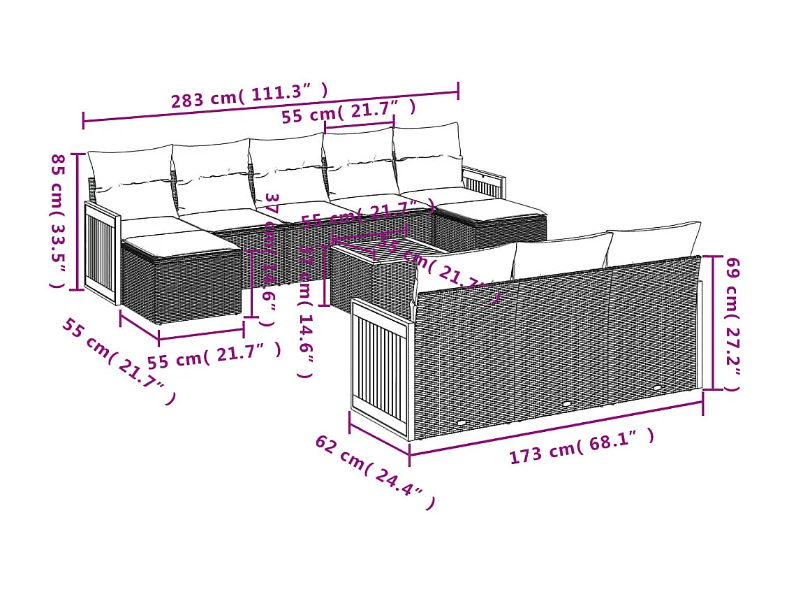 Salon de jardin 11 pcs avec coussins beige résine tressée