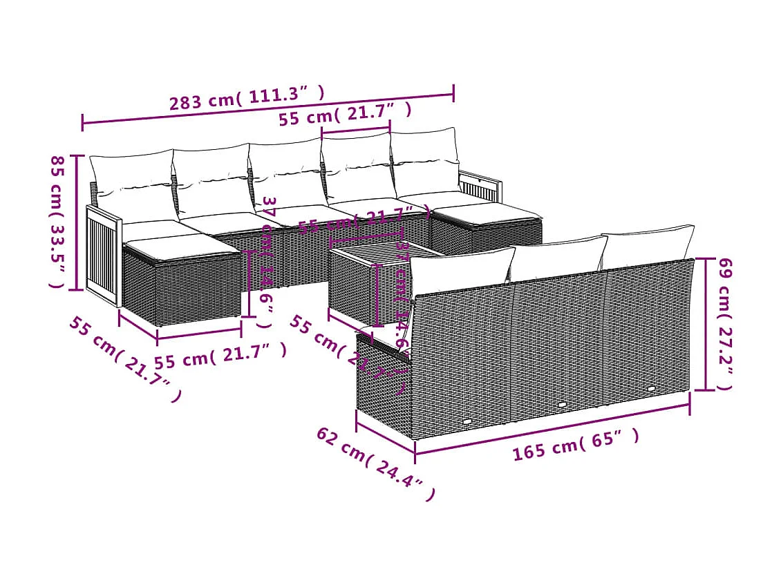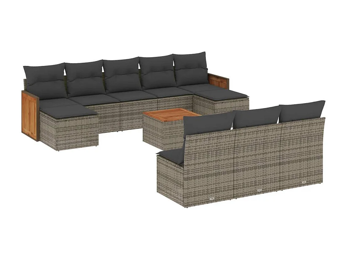 Salon de jardin 11 pcs avec coussins gris résine tressée
