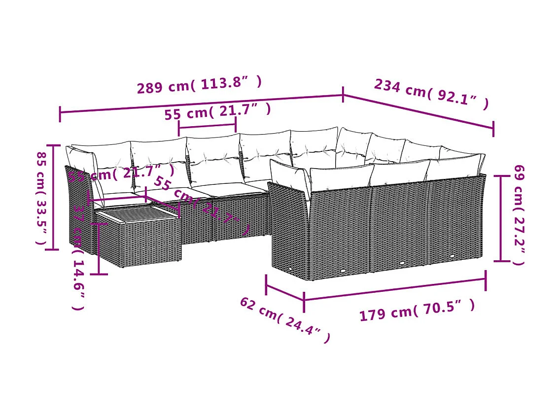 Salon de jardin 11 pcs avec coussins gris résine tressée