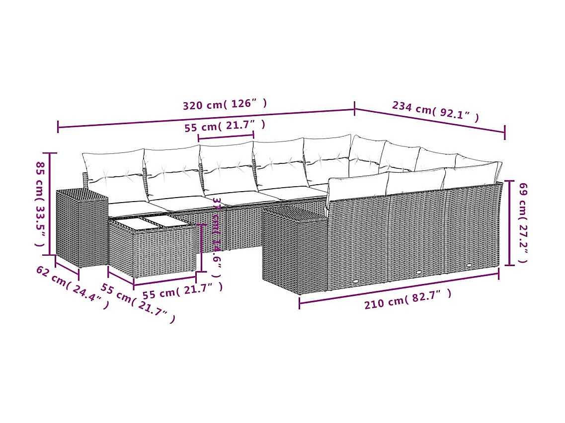 Salon de jardin 11 pcs avec coussins gris résine tressée