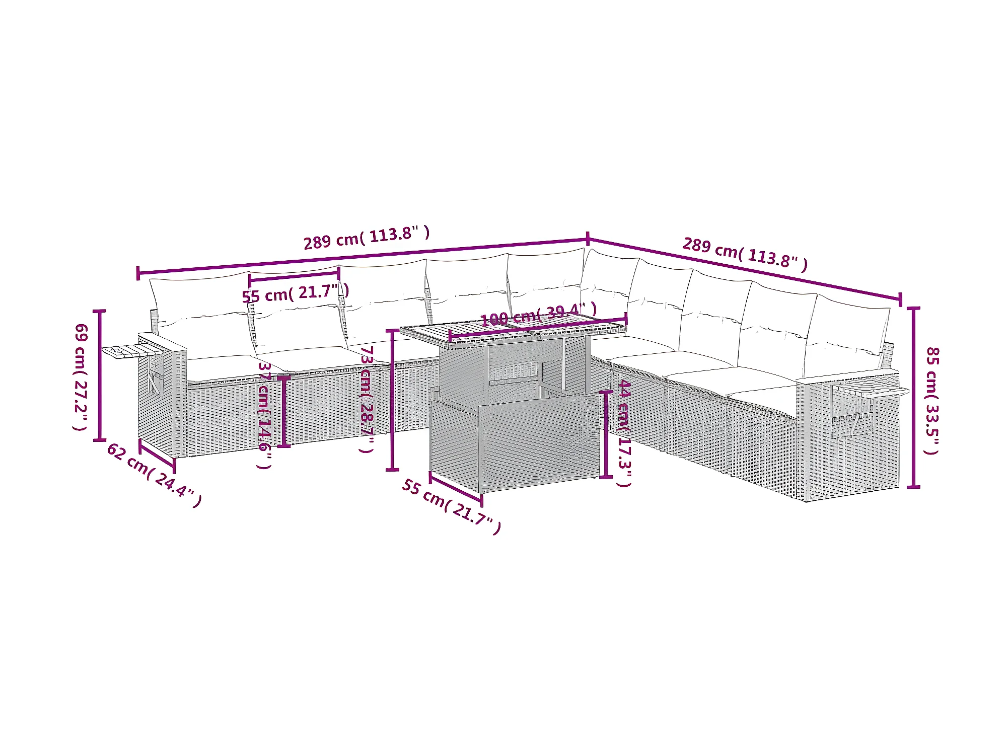 Salon de jardin 11 pcs avec coussins gris résine tressée