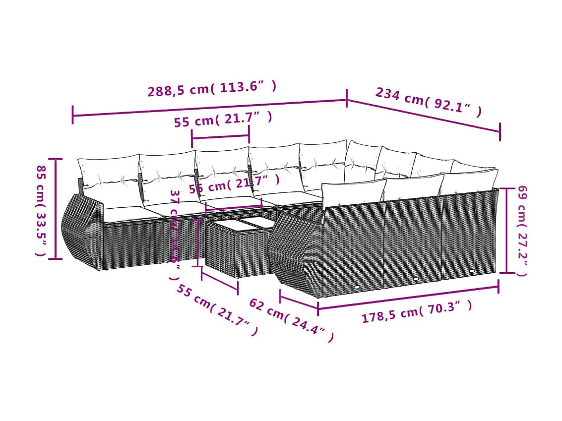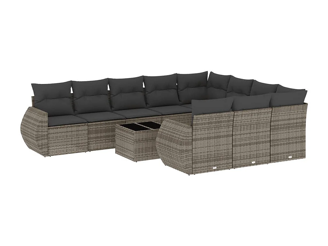 Salon de jardin 11 pcs avec coussins gris résine tressée