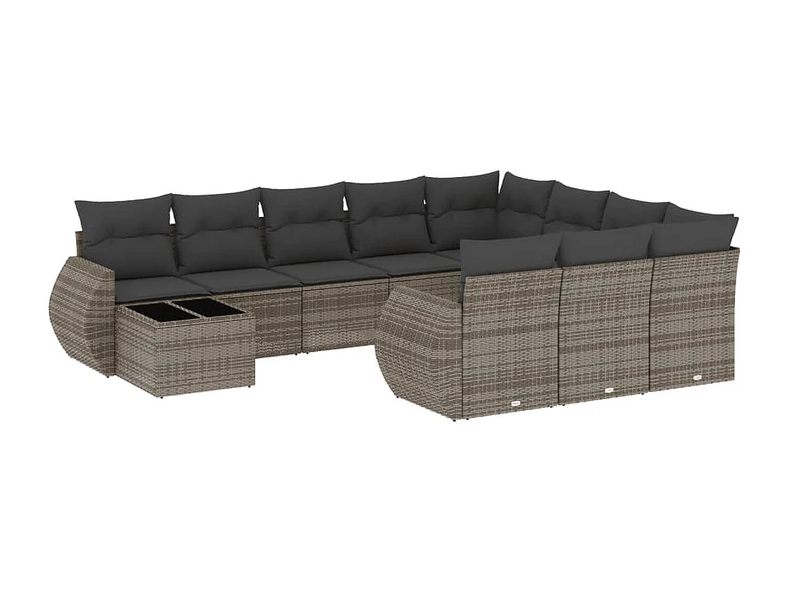 Salon de jardin 11 pcs avec coussins gris résine tressée
