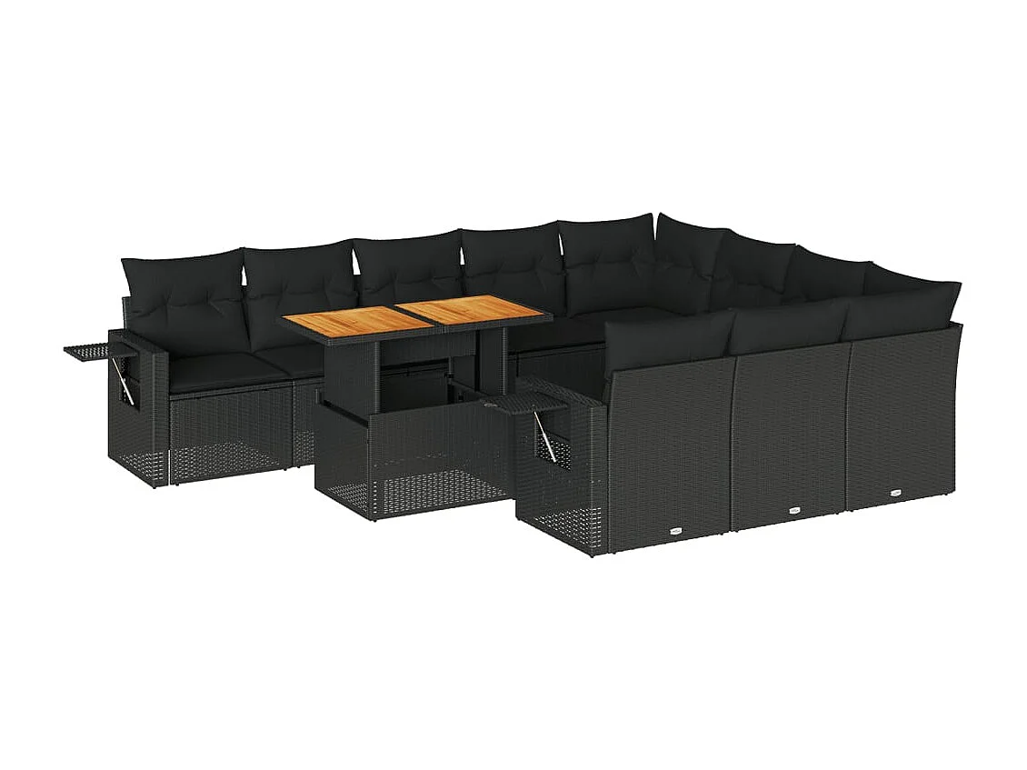 Salon de jardin 11 pcs avec coussins noir résine tressée