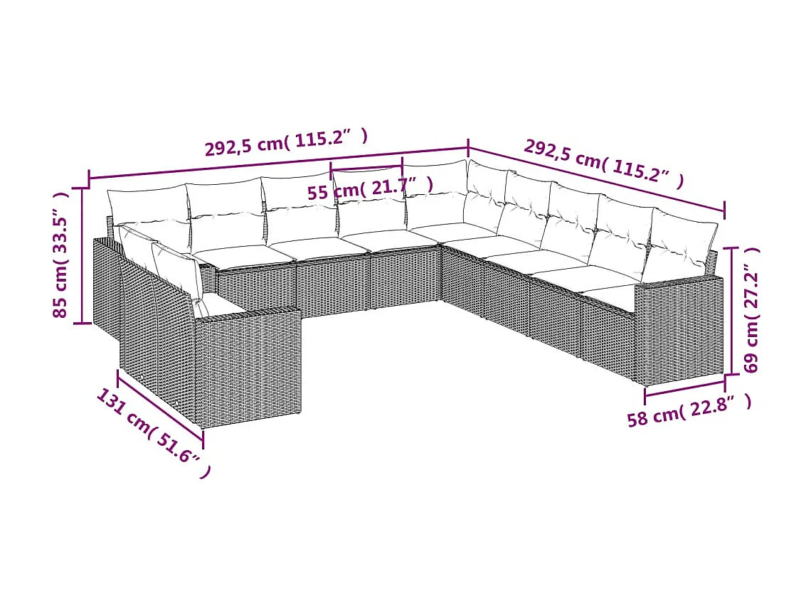 Salon de jardin 11 pcs avec coussins noir résine tressée