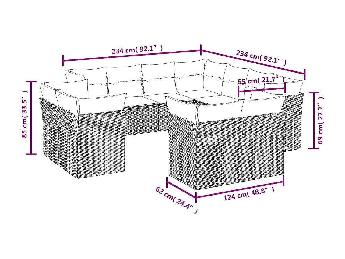 Salon de jardin 11 pcs avec coussins noir résine tressée