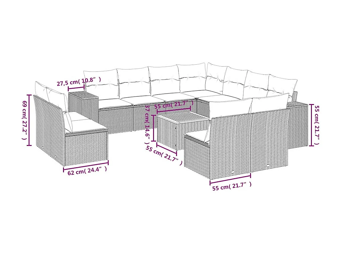 Salon de jardin 12 pcs avec coussins noir résine tressée