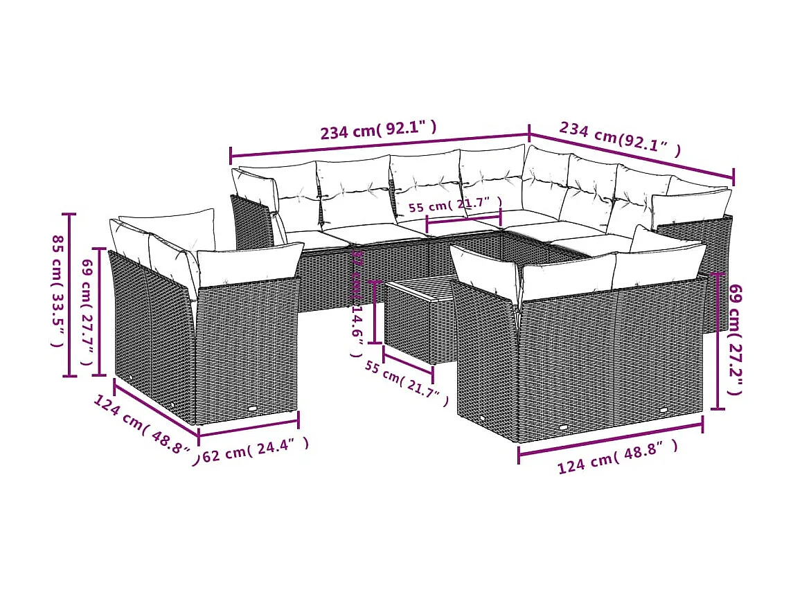 Salon de jardin 12 pcs avec coussins noir résine tressée