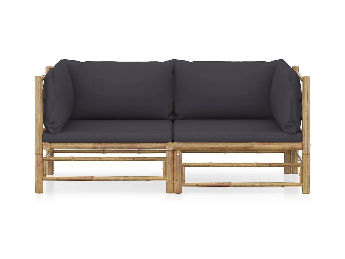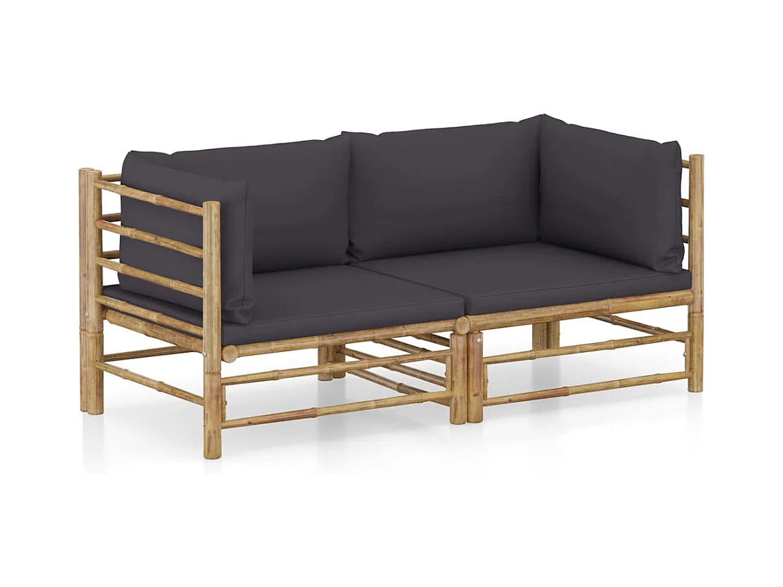 Salon de jardin 2 pcs avec coussins gris foncé Bambou BE44660
