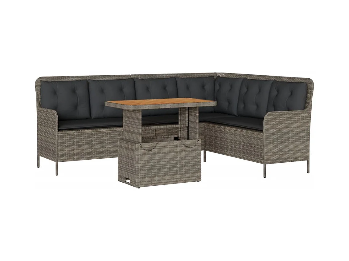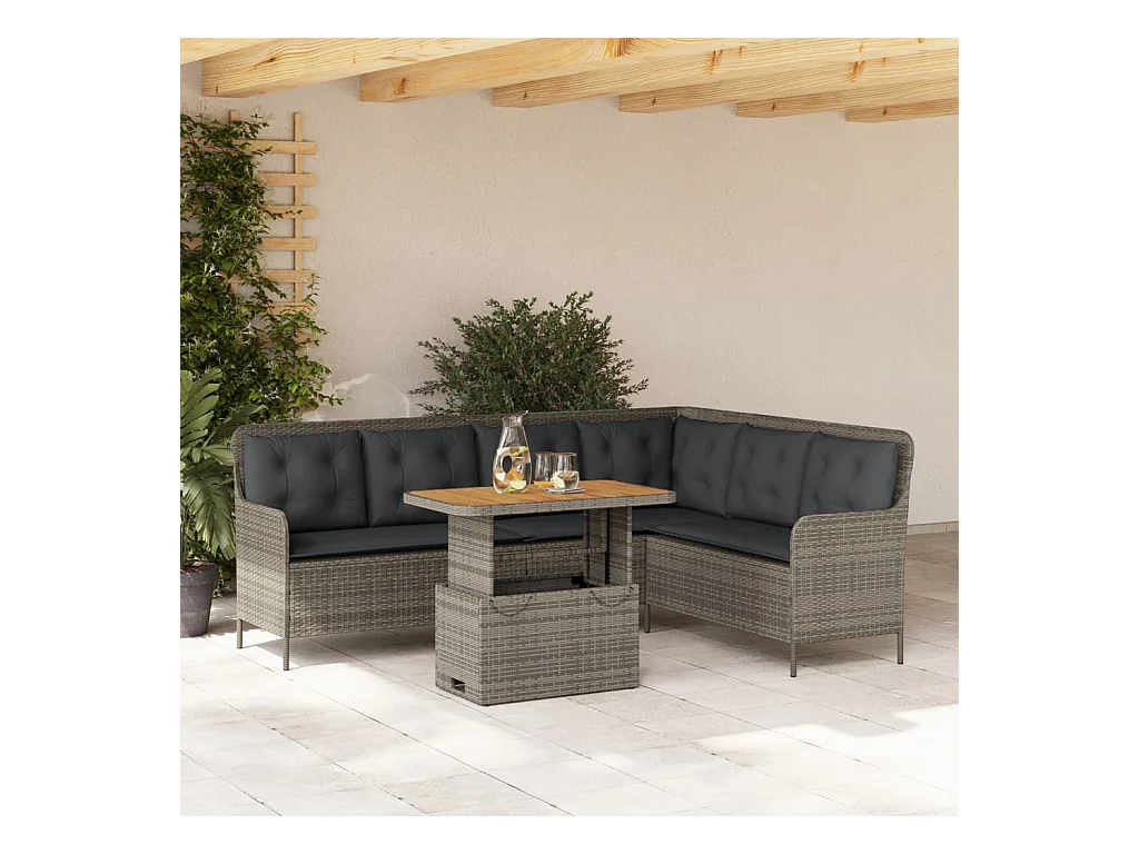 Salon de jardin 2 pcs avec coussins Gris Résine tressée